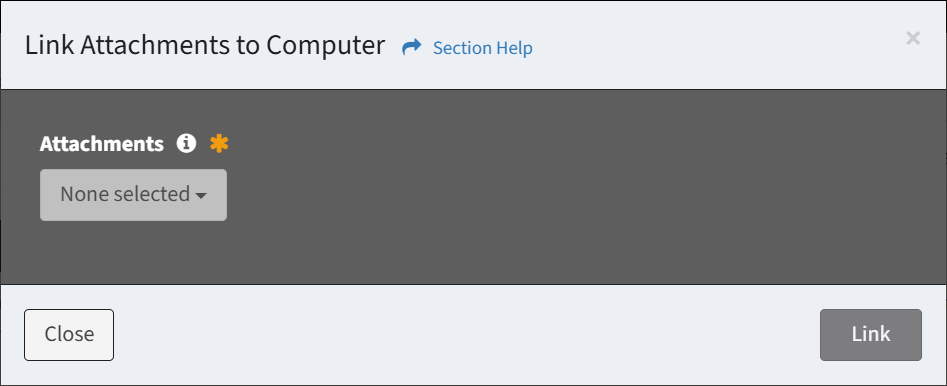 2. Select attachments from the Attachments drop down and then click the Link button. Click the Close button to cancel the operation.