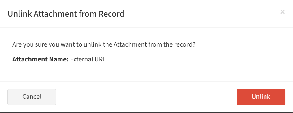 From the Attachment tab, you can unlink attachments from the data record. To unlink: