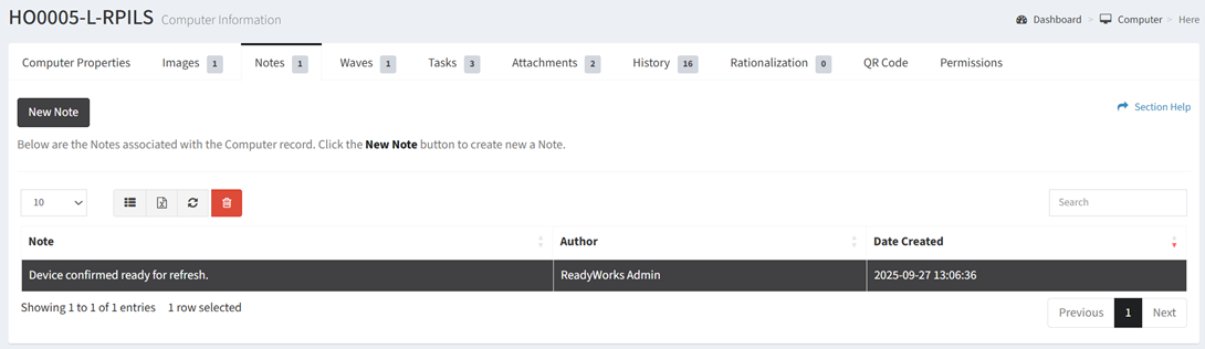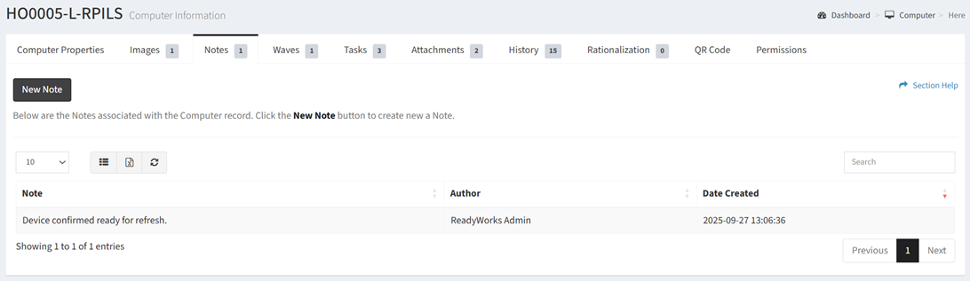 - The new note function is only available to users in the Administrator, Regular User, and Orchestration User security groups