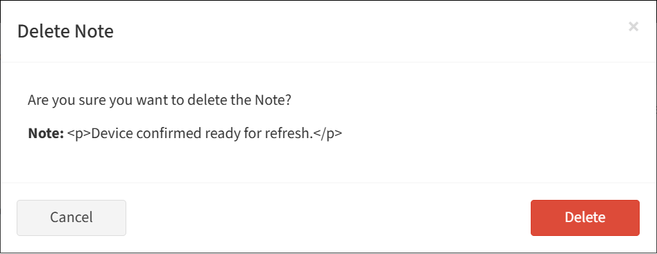 - Click the Delete button to confirm the delete operation. Click the Cancel button to cancel the operation.