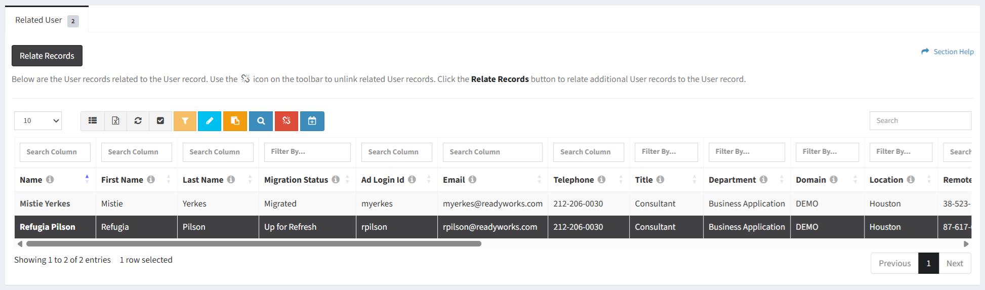 - Edit related data records by selecting a record (row) and clicking the Edit Record button on the toolbar