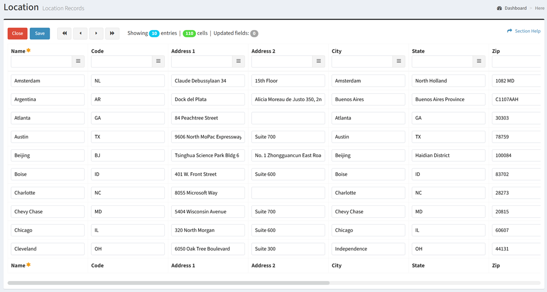 - Click the Save button when finished to update the data records. Click the Close button to cancel the operation.