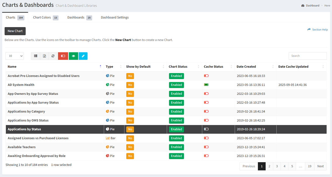 - Upon clearing the cache of the chart, the Cache Status will be signified by the