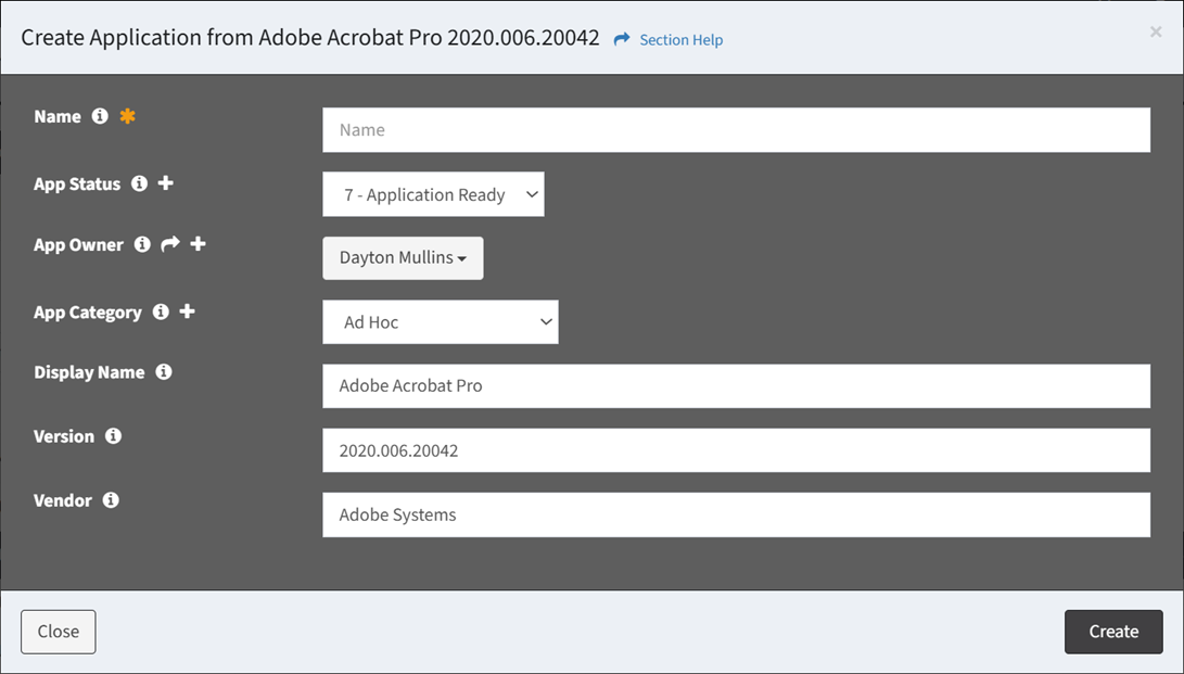 - Click the Create button when finished to create the data record. You will be redirected back to the Primary Data page. Click the Close button to cancel the operation.