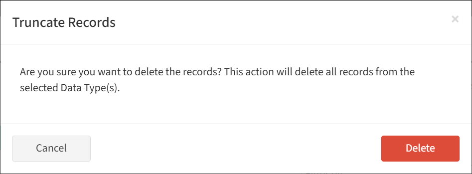 - Click the Delete button to confirm the truncate operation. Click the Cancel button to cancel the operation.