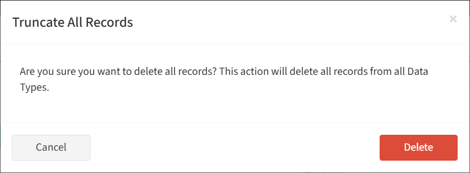 - Click the Delete button to confirm the truncate all operation. Click the Cancel button to cancel the operation.
