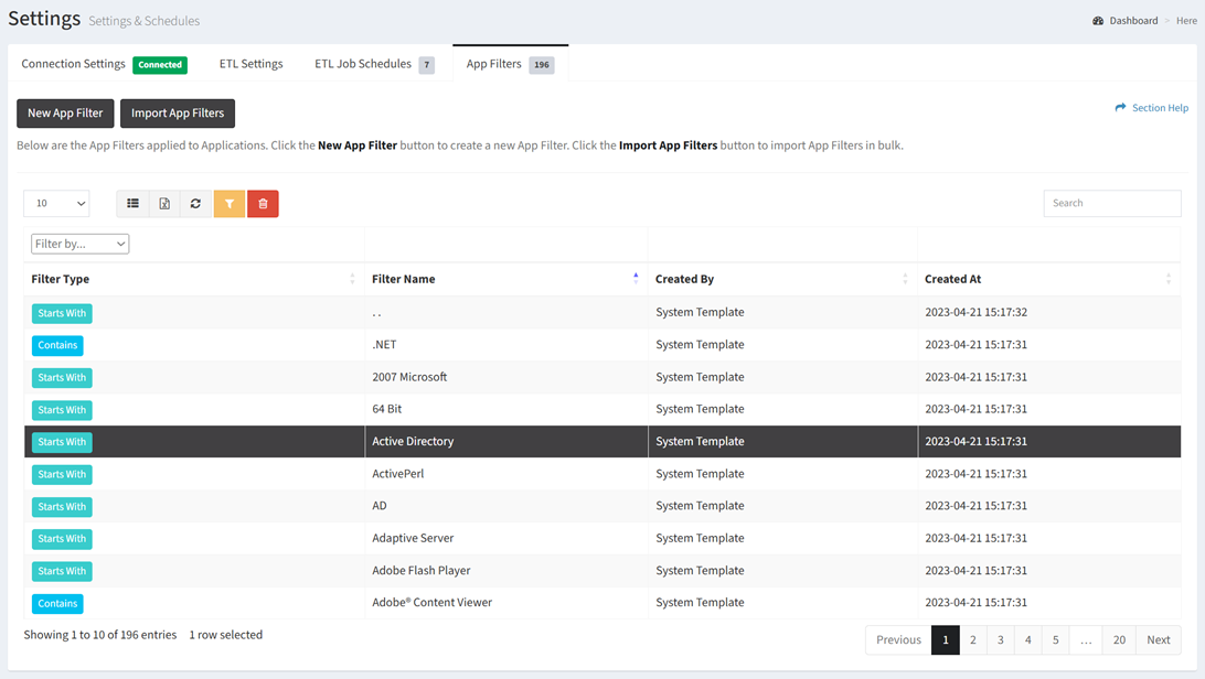 NOTE: The App Filters tab is only displayed in ETL5 when Show the App Filters tab is checked on the ETL Settings tab.