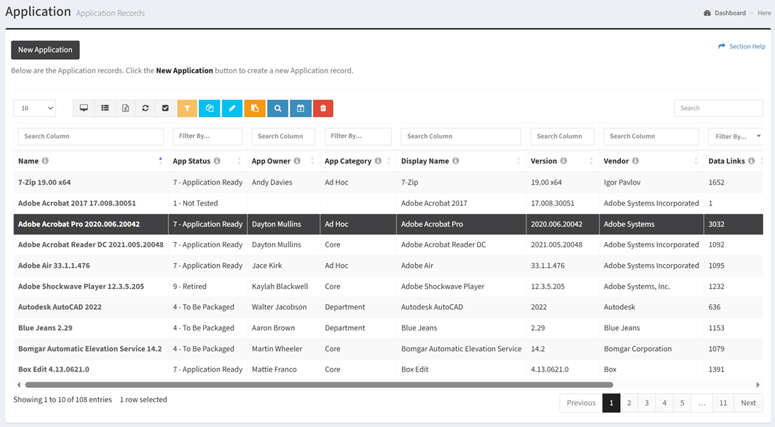 - The delete button is enabled (ungrayed out) when a record (row) is selected