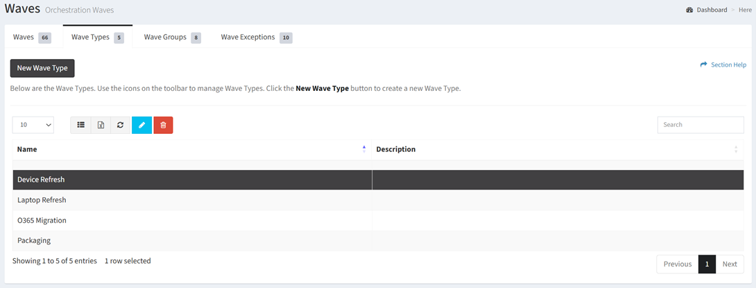 NOTE: Wave types cannot be deleted when assigned to a wave.