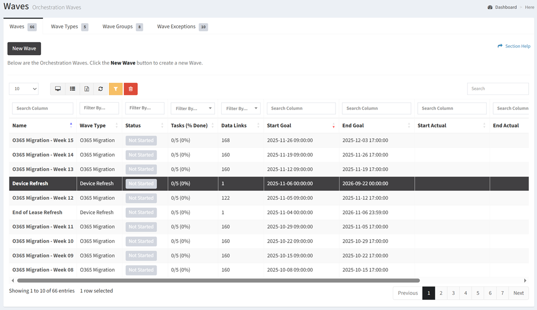 - The delete button is enabled (ungrayed out) when a wave (row) is selected