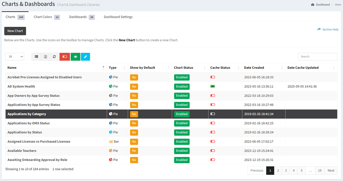 - The edit button is grayed out unless a chart (row) is selected