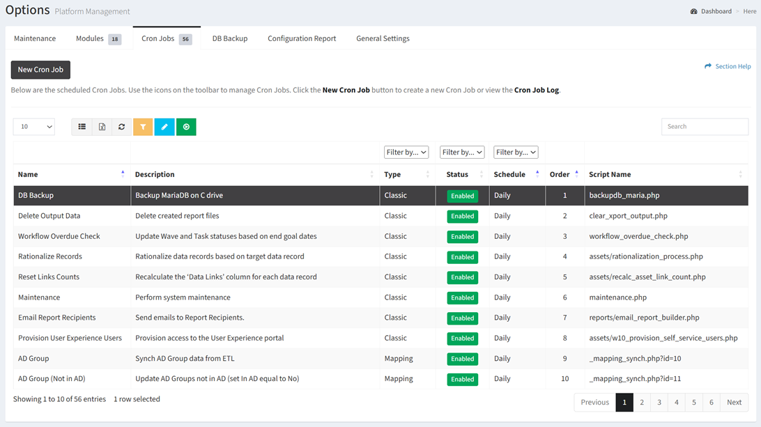From the Cron Jobs tab, you can edit the properties of cron jobs. To edit: