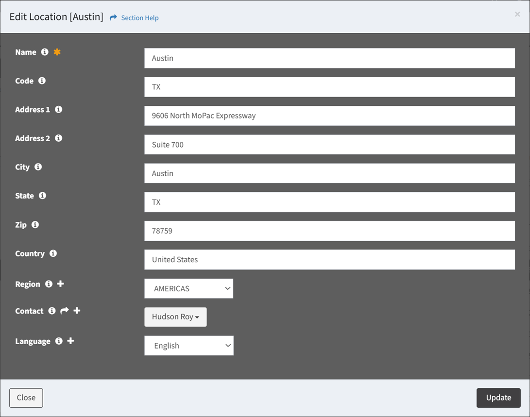 - Click the Update button when finished to update the data record. Click the Close button to cancel the operation.