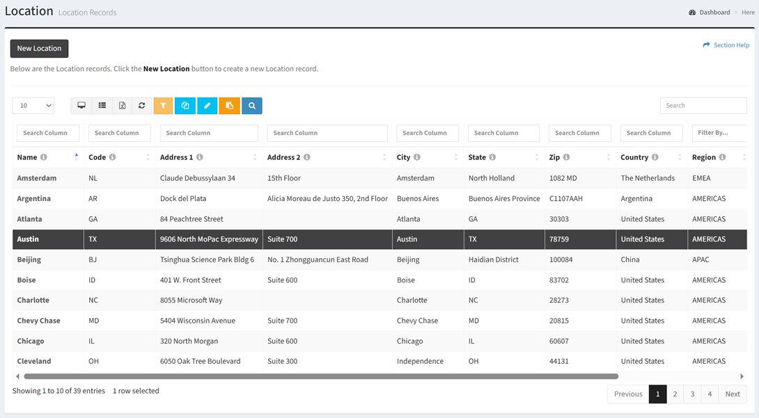 - The edit button is grayed out unless a record (row) is selected