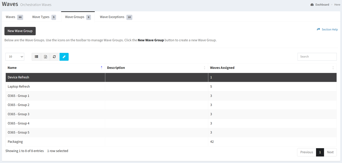 From the Wave Groups tab, you can edit wave groups. To edit: