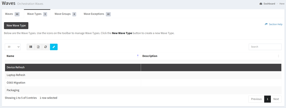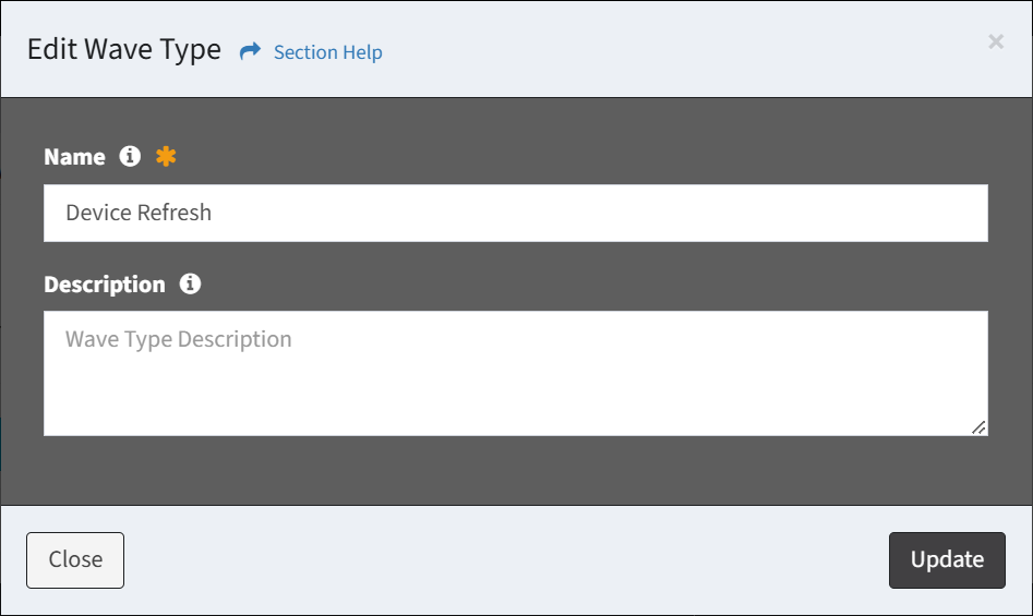 - Click the Update button when finished to update the wave type. You will be redirected back to the Wave Types tab. Click the Close button to cancel the operation.