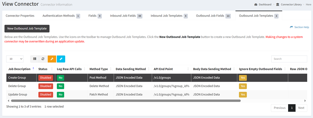 From the Outbound Job Templates tab, you can edit outbound job templates. To edit: