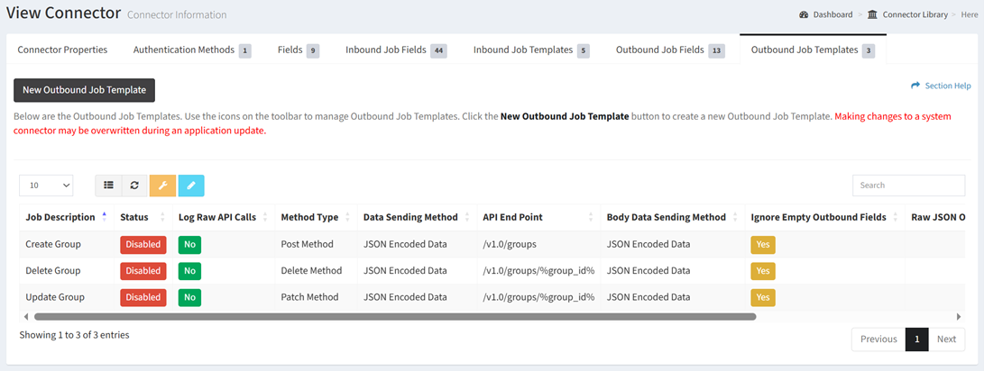 - Create new outbound job templates by clicking on the New Outbound Job Template button