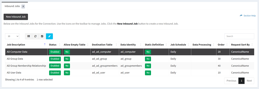 From the Inbound Jobs tab, you can edit inbound jobs. To edit: