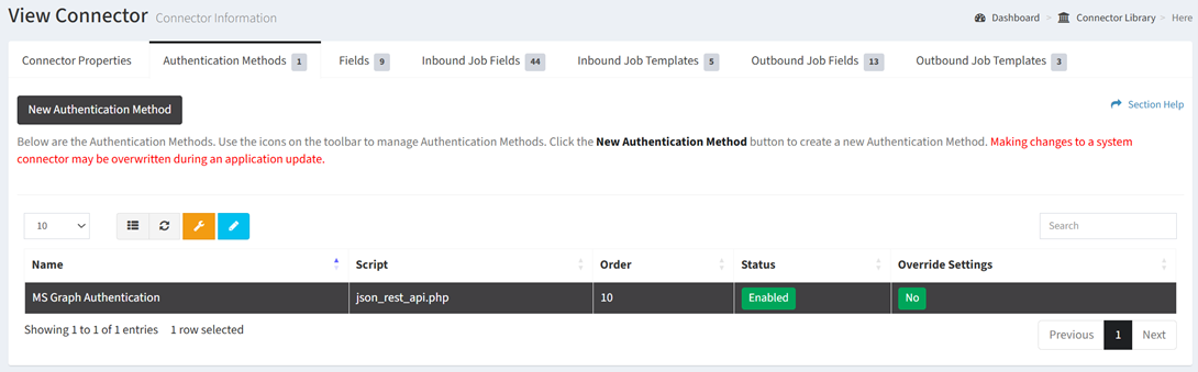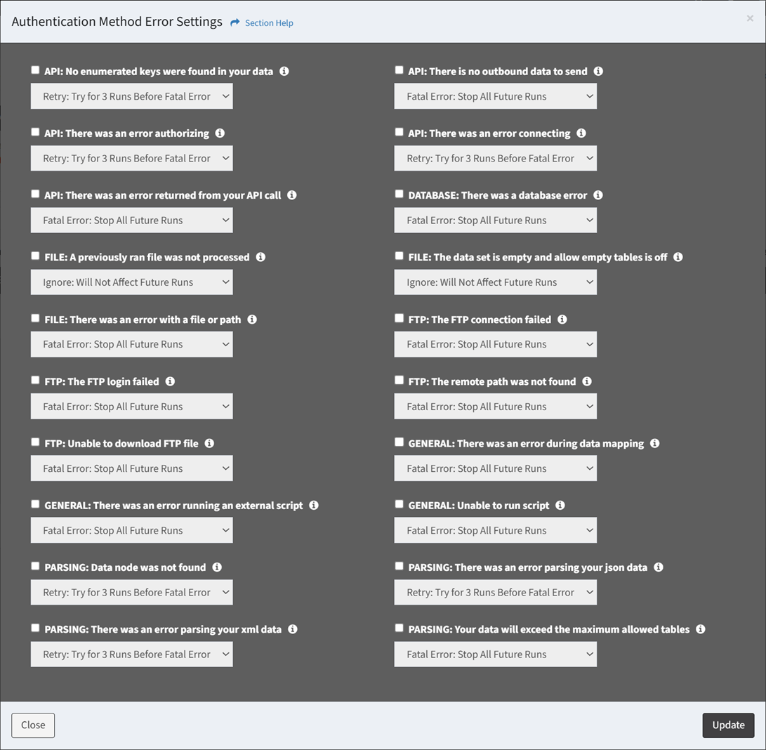 From the Authentication Methods tab, you can override ETL error settings. To override: