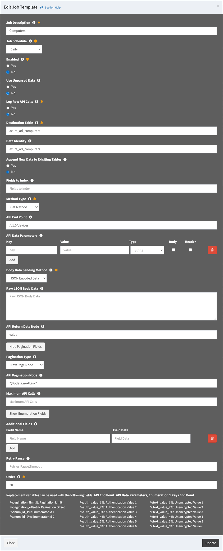 - Pagination Limit – Request pagination limit of the job template (optional)