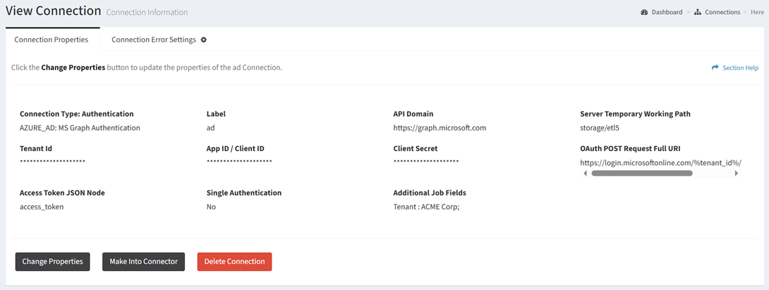 - Click the Delete button to confirm the delete operation. You will be redirected to the Connections page. Click the Cancel button to cancel the operation.