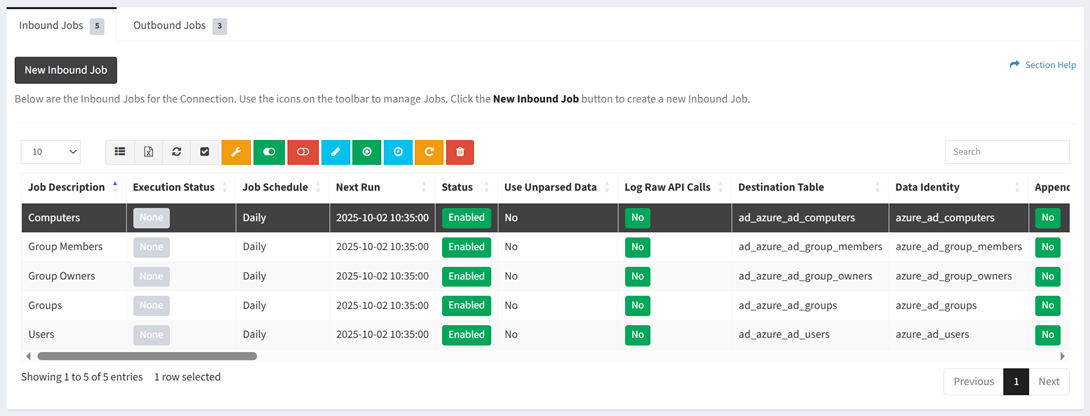 NOTE: The Upload File button is only available on CSV, JSON and XML file connectors with Manual File Upload enabled. - The delete button is grayed out unless a job (row) is selected