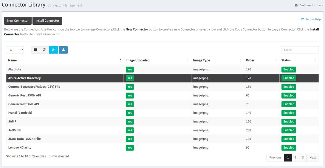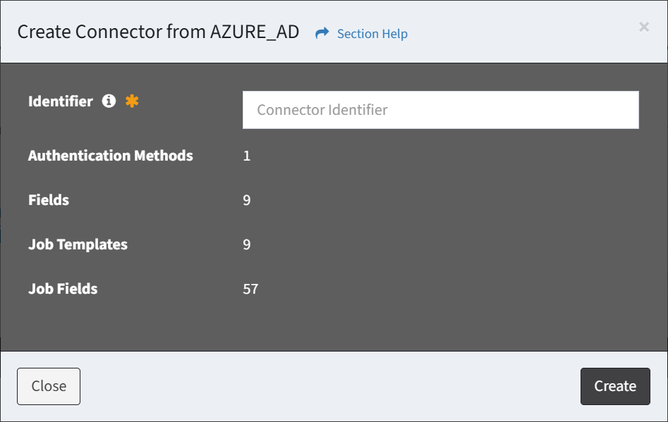 - Click the Create button when finished to create the connector. You will be redirected back to the Connector Library page. Click the Close button to cancel the operation.