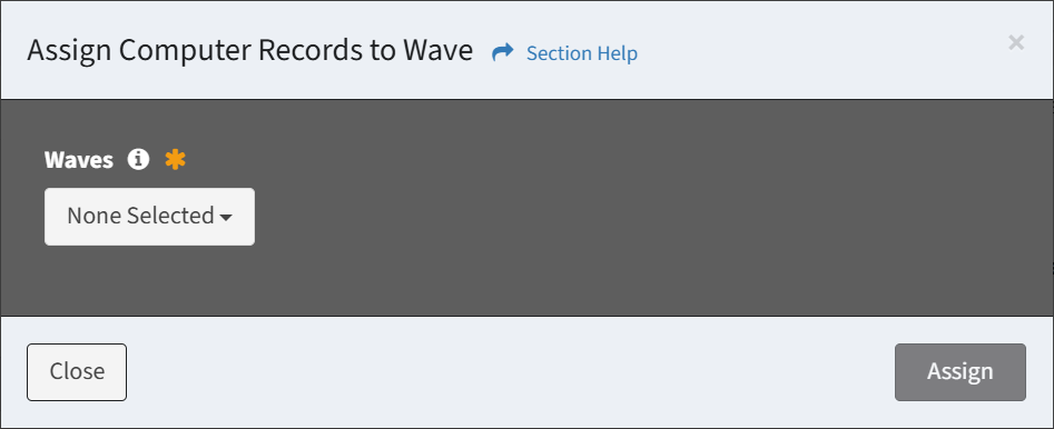 - Select waves from the Waves drop down and then click the Assign button. Click the Close button to cancel the operation.