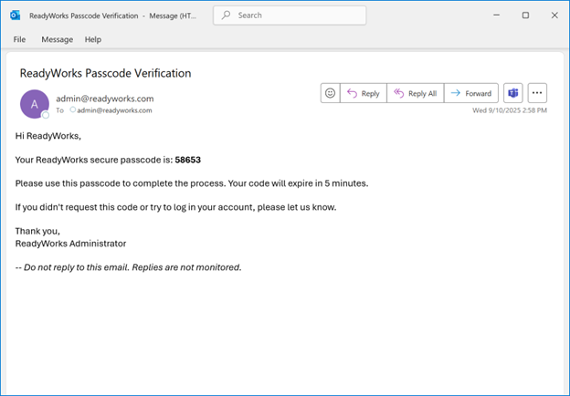 - A secure passcode will be sent to your email