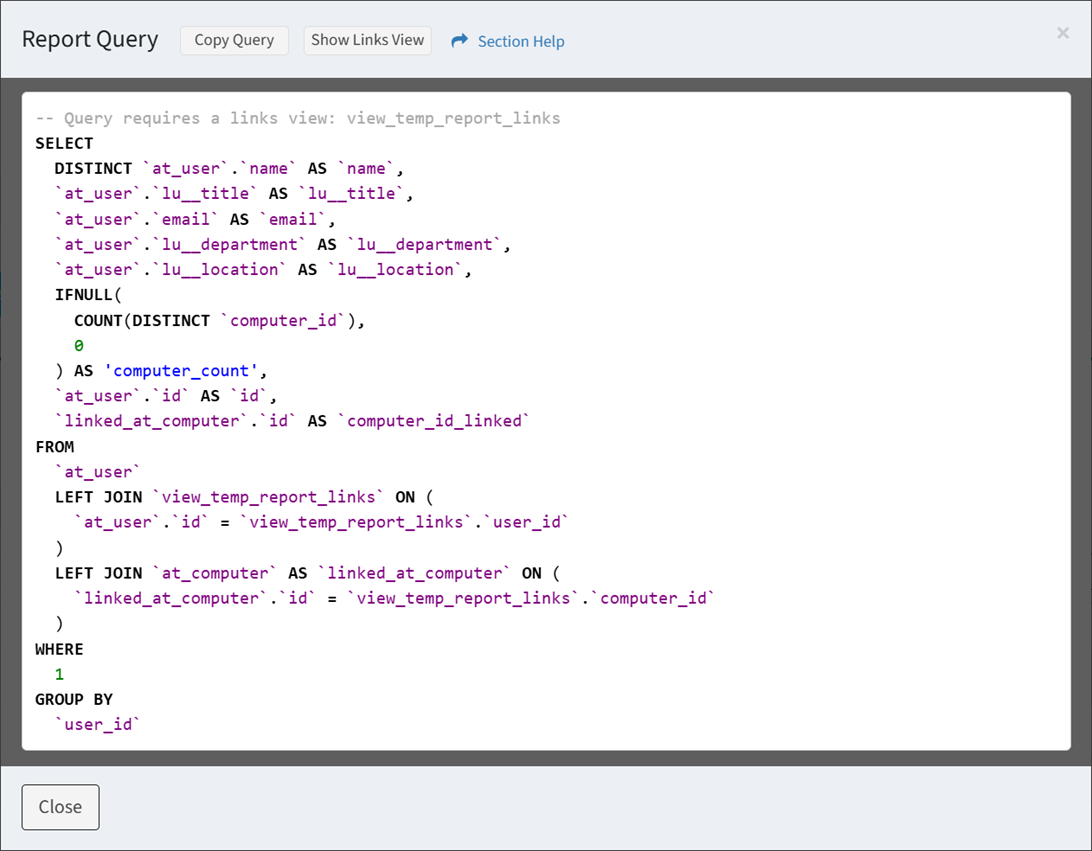 - Click the Copy Query button to copy the query to the clipboard