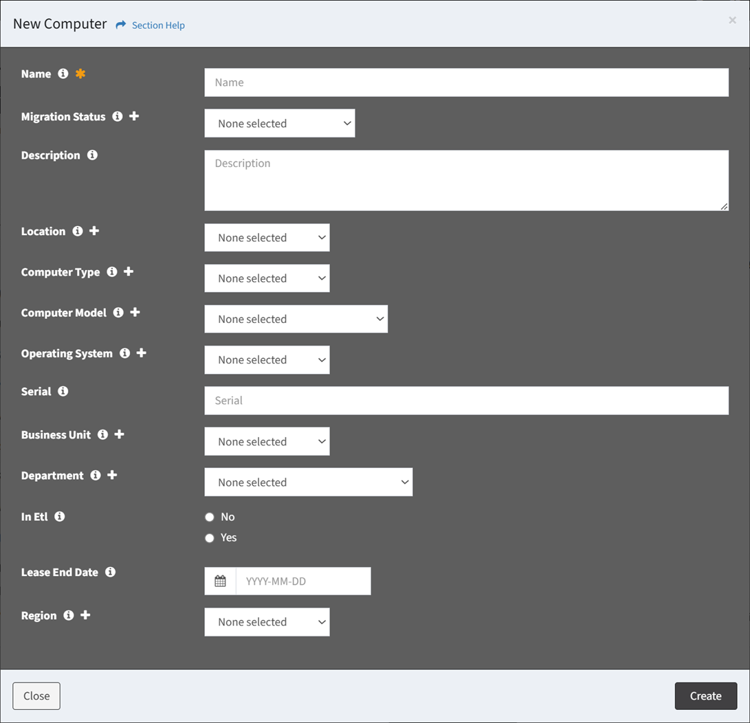 - Click the Create button when finished to create the data record. You will be redirected back to the Primary Data page. Click the Close button to cancel the operation.
