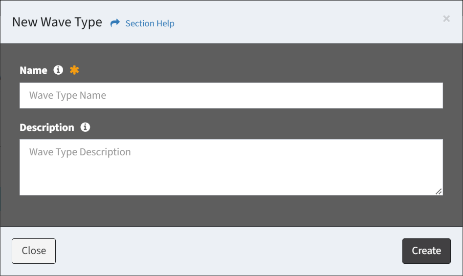 - Click the Create button when finished to create the wave type. You will be redirected back to the Wave Types tab. Click the Close button to cancel the operation.