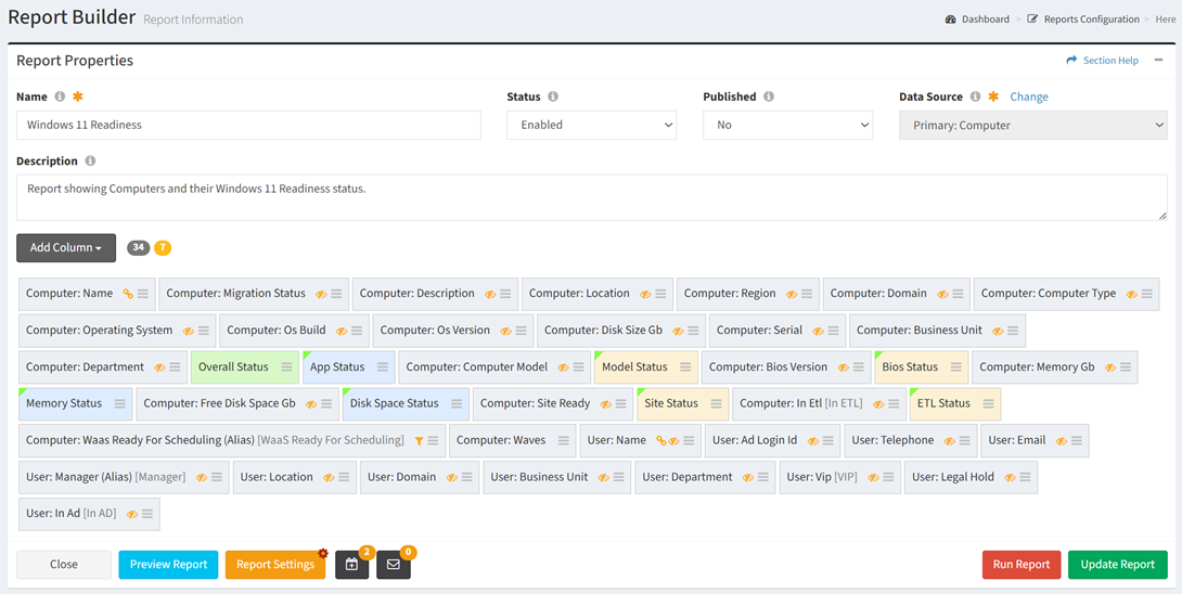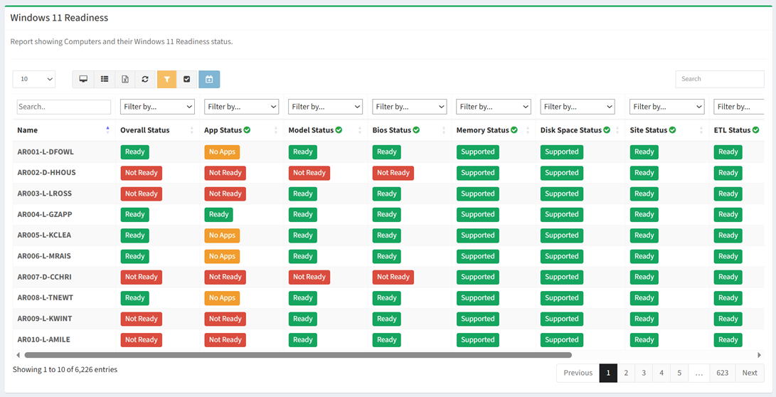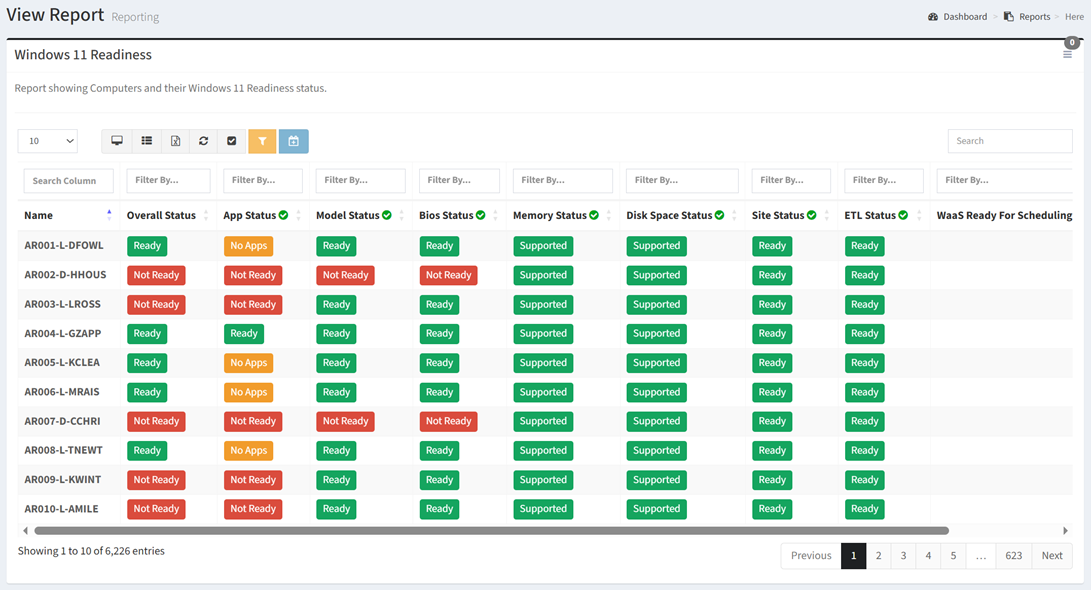 - For each Computer Model – Ready or Not Ready
