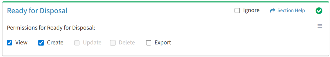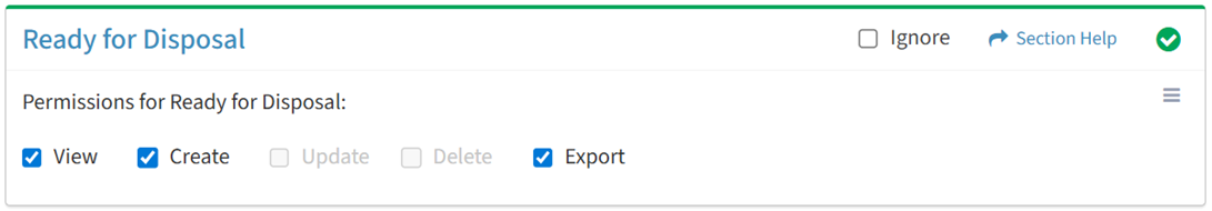 From the Ready for Disposal tab, you can select all or deselect all permissions for ready for disposal.
