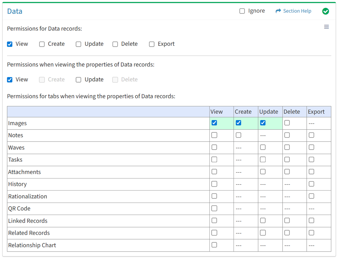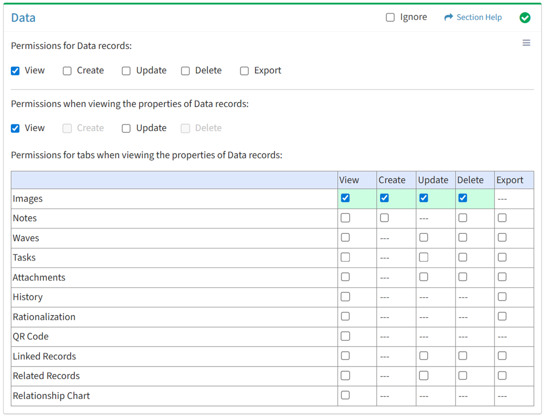 From the Data tab, you can enable View access for images when viewing the properties of data.