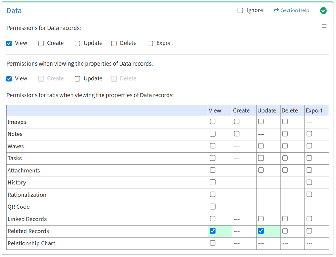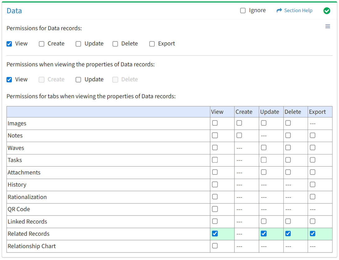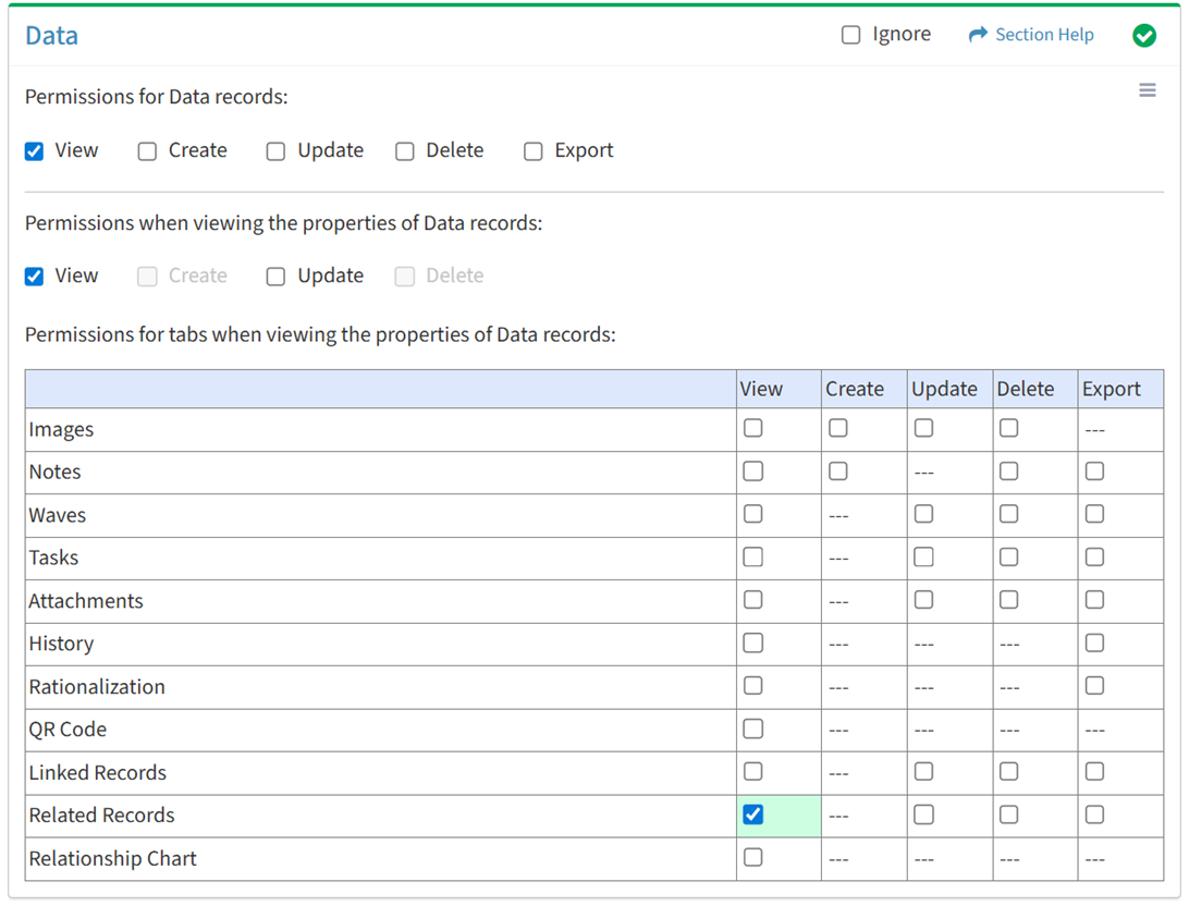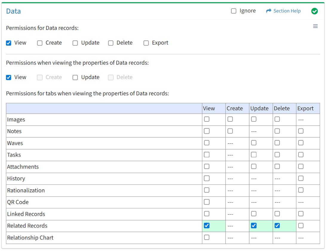 - Enable View, Update, Delete, or Export access for the Related Records tab