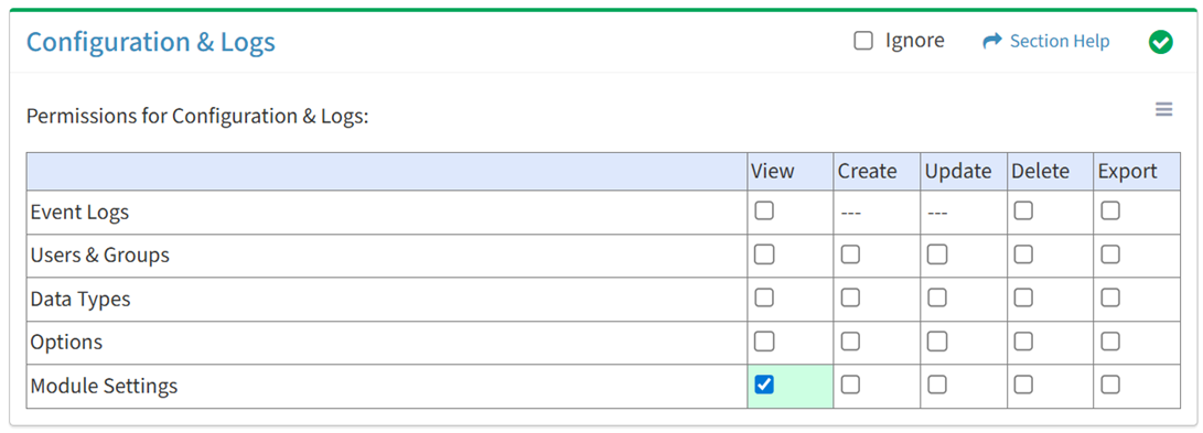 From the Configuration & Logs tab, you can enable View access for module settings.