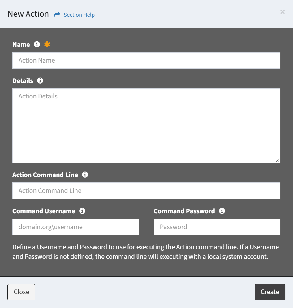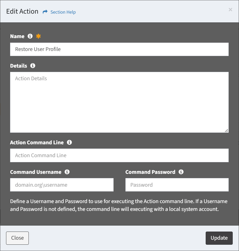 - Command Username – Username of the account to execute the task action (optional)