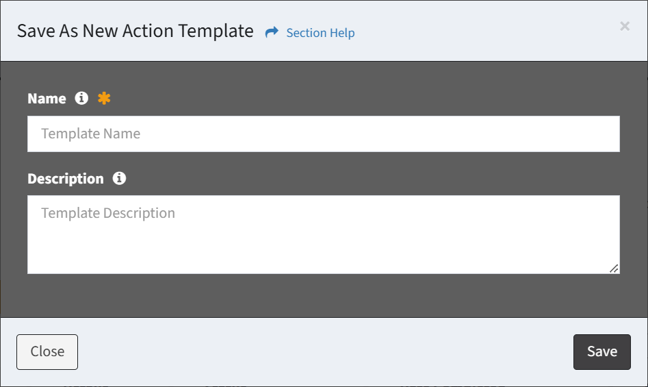 - Select Save as Template from the New Action drop down to bring up the Save As New Action Template dialog