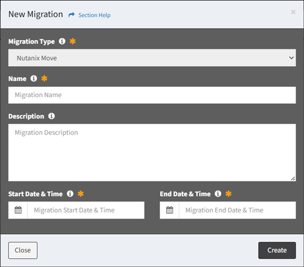 NOTE: Nutanix Move is the only migration type currently supported. - Name – Name of the migration (required)